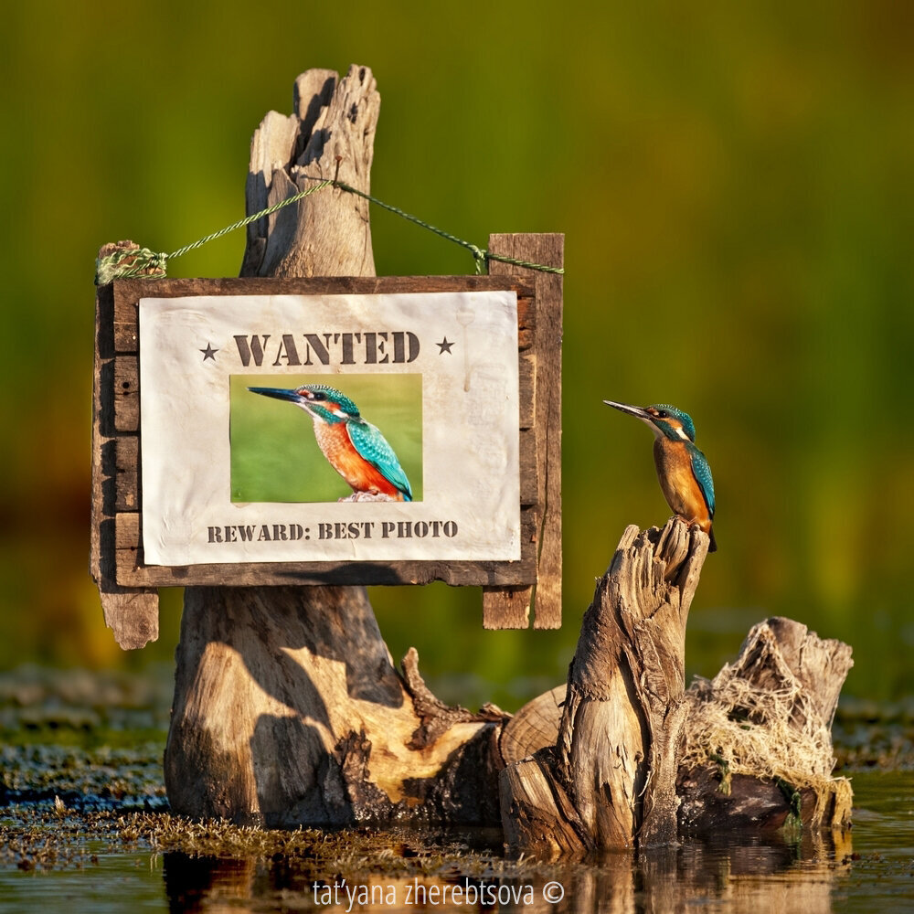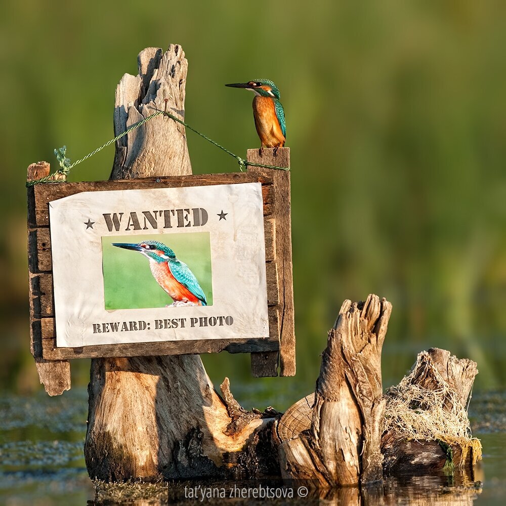 В то время, да и сейчас, в сети очень часто можно было встретить зимородка сидящего на табличках "No fishing" (Не рыбачить). Особенно забавно, когда на этой табличке сидит зимородок с рыбкой в клюве. Но нам не хотелось повторяться, поэтому мы выбрали такой вот неизбитый и эксклюзивный вариант.