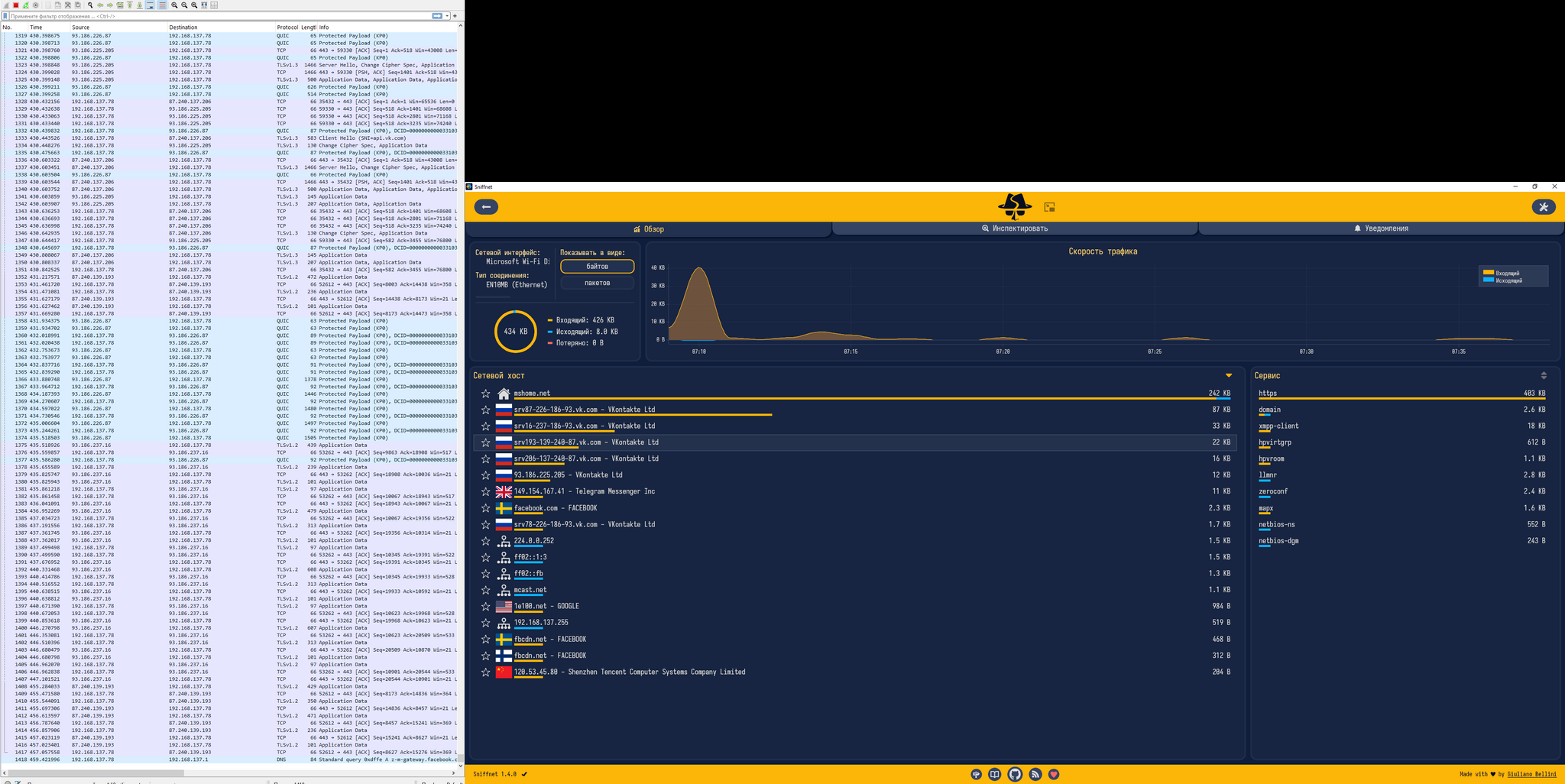 Рис 5: VK мессенджер aka Сферум просто лежа, глядя в потолок оказался очень общительный малый, куча соединений, различные адреса и это не первый запуск все аватарки, диалоги и прочее уже были подгружены, видимо не запомнил с первого раза.