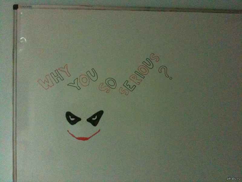 Вчера уходя с работы нафигачил сие на доске своими культяпками, чтобы коллеги с утра повеселели. Я не фотограф и не художник, так что без критики, пожалуйста.