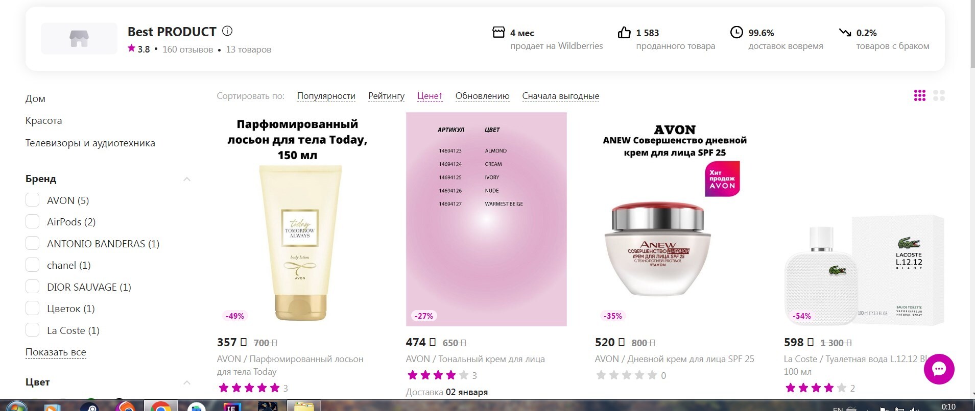 Как бы в "лучшие" времена "Dior" начинался с 5000 руб. А тут такой "подарок" от WB. Хотя даже по представленным ценам виден разброс...
