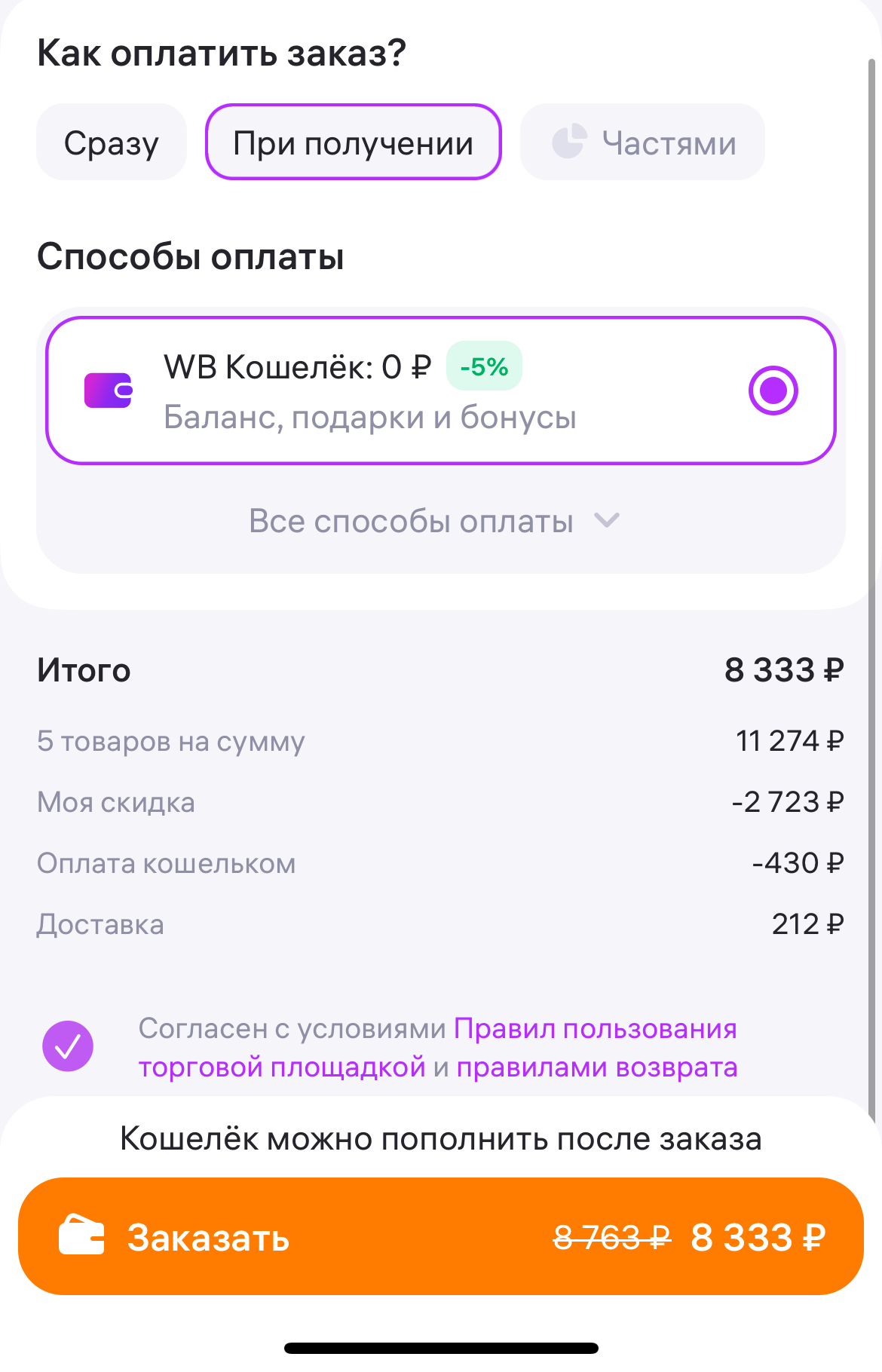 Вроде читала такие посты про wb, но плохие отзывы можно найти о чем угодно, где-то же надо покупать вещи. Да и всегда все было нормально. Сегодня забирала заказ - предоплаченный шампунь и медицинские носки. За носки была указана цена 375 рублей с wb-кошельком. Перевела эту сумму: