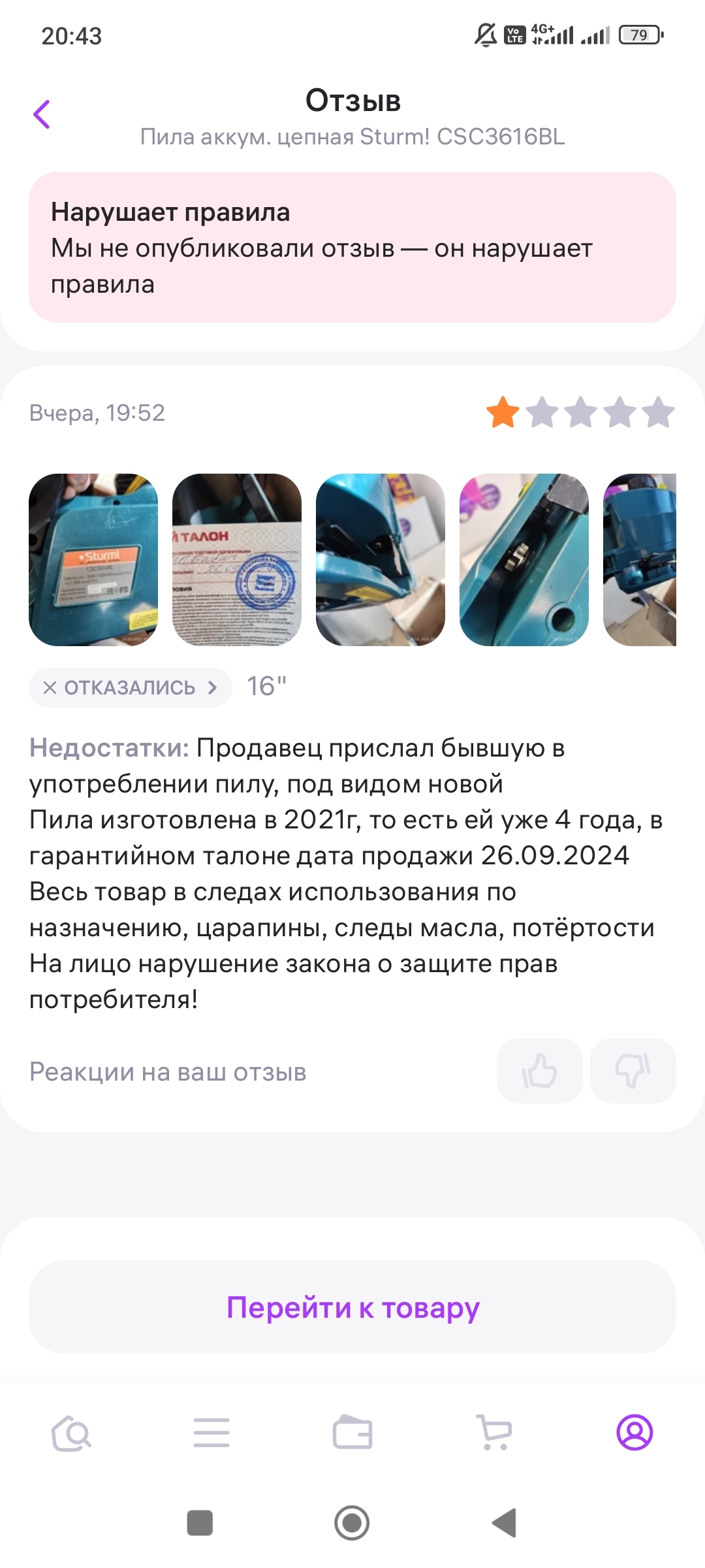 Позже уже дома решил написать отзыв на площадке про эту пилу, дабы уберечь покупателей от этой прекрасной покупки. Иии...