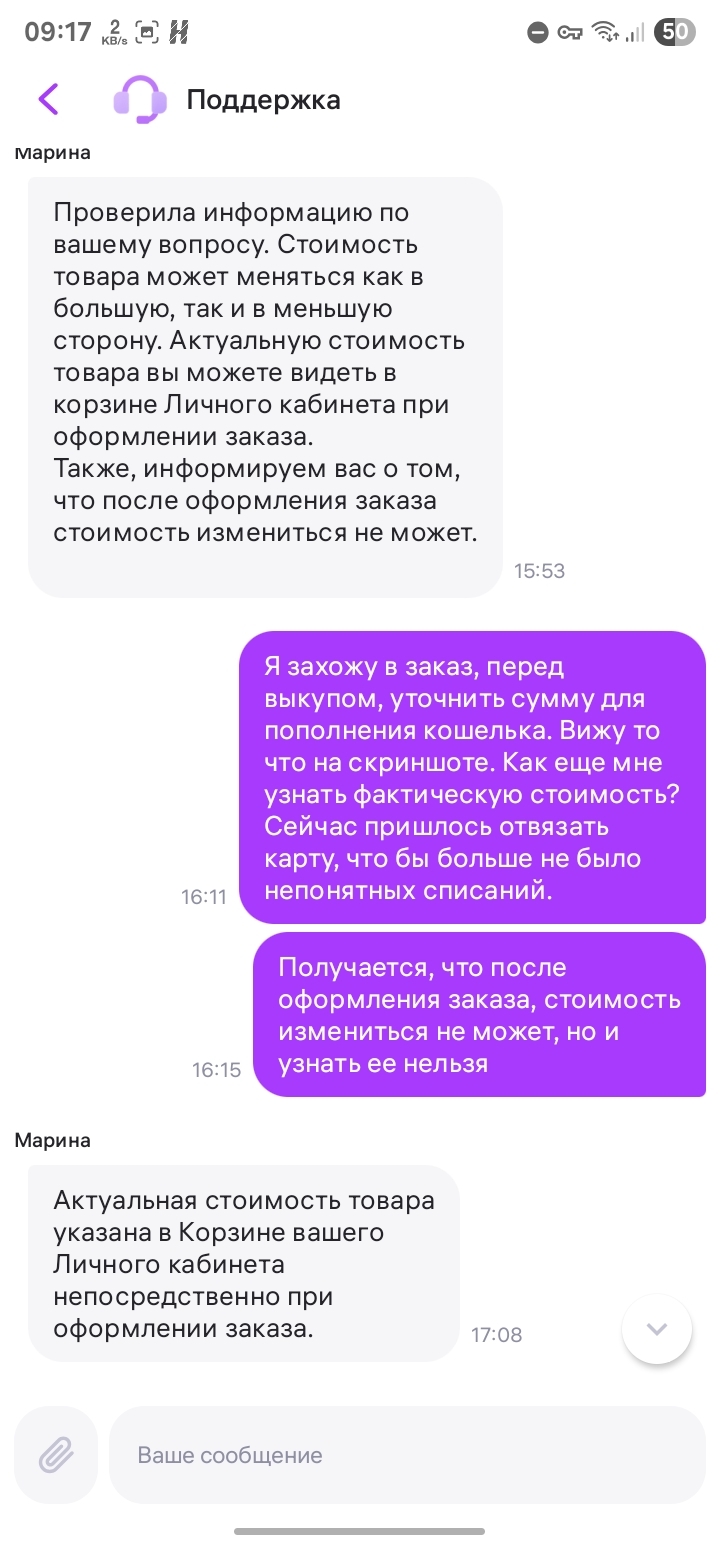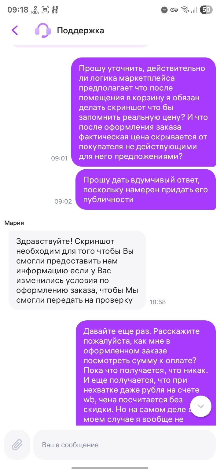 Конкретно в моем случае, wb списал за товар сумму, которую я вообще никогда не видел на этапе покупки. Из переписки видно, что магазин считает достаточным показать цену только при оформлении заказа, после вы видите текущую цену, с учетом возможных изменений (оно мне зачем, интересно).