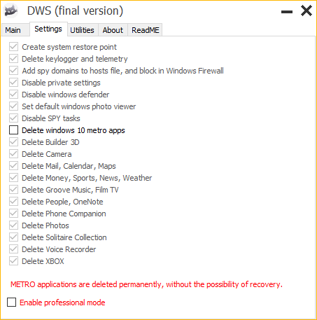 Данная программа уничтожает шпионство полностью. Удаляет некоторые элементы Телеметрии,а остальные отключает, отключает Windows Defender, Кортану,и многое другое. Так же программа отключает Windows Update, что позволяет вам остаться анонимным, и не получать новых шпионских обновлений.