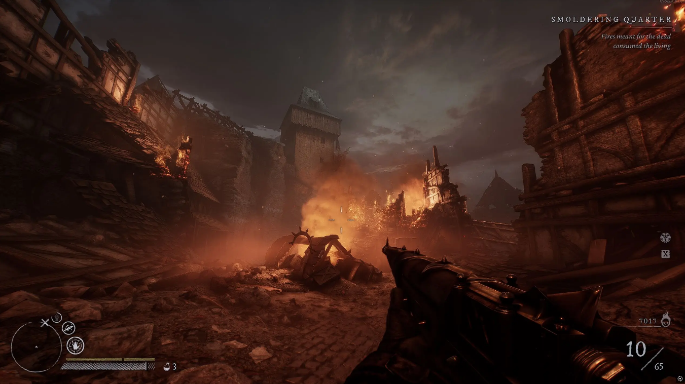 Особо отмечу: Боевая система в игре это оружие + магия. Ведь мы инквизитор, и ничто тёмное нам не чуждо. Мы можем носить 2 стандартных оружия + одно ведьминское + 2 вида заклинаний (и ещё есть усилители: артефакт, кольцо, фетиш - открывается позднее). Всё это вместе позволяет создать свой билд под свой стиль игры.