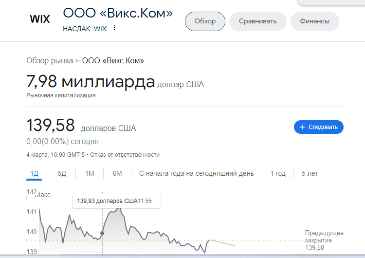 (NASDAQ) 139,58 долларов США 0,00 (0,00%) 4 марта, 16:00 GMT-5