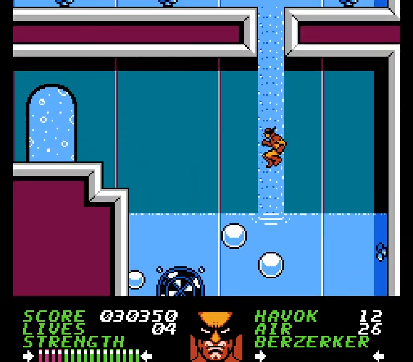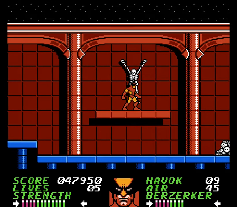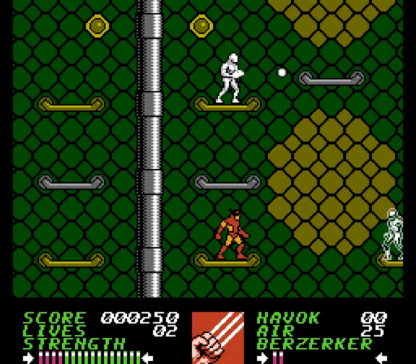 Игра-платформер про Росомаху. В игре 9 уровней. На двух последних есть битва с боссами: Магнето и Саблезубый. На уровнях запрятаны двери, ведущие в бонусную комнату. Всего их 6. А также имеется 3 варп-зоны, ведущие на несколько уровней вперёд. Ниже добавляю видео и скрины.