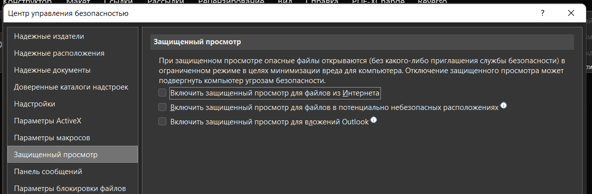 Пробовал снимать галочки в центре безопасности, не помогло -