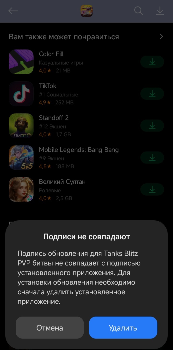 Тем временем приложение уже не обновляется, а на серверах идут технические работы.