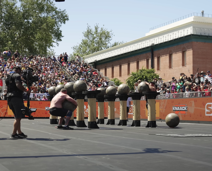 Финальное испытание группового этапа - Stone Medley, эстафета с камнями. Жим камня, весом 123кг, стоя, подъем 158 кг камня на плечо, перенос камня весом 176 кг на 20 метров и поднятие камня весом 182кг. Лимит времени - 90 секунд. Райно Нэл выполнил всю эстафету за 62 секунды.