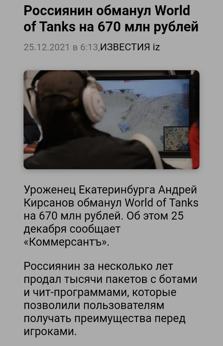 vipvip2k WoT 3 года назад Ссылка на полную статью https://mirtesen.ru/instant/blog/43692508937/Rossiyanin-obma... Танки World of Tanks Мошенничество Ещё 0