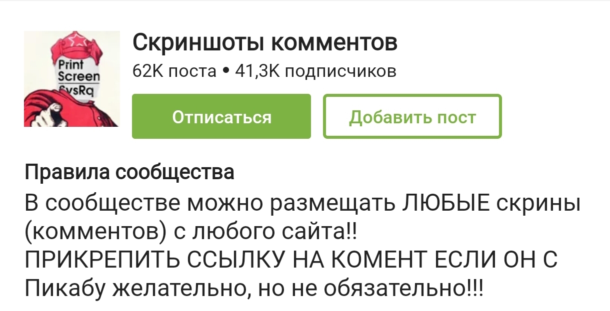 В сообществе можно размещать ЛЮБЫЕ скрины (комментов) с любого сайта!!