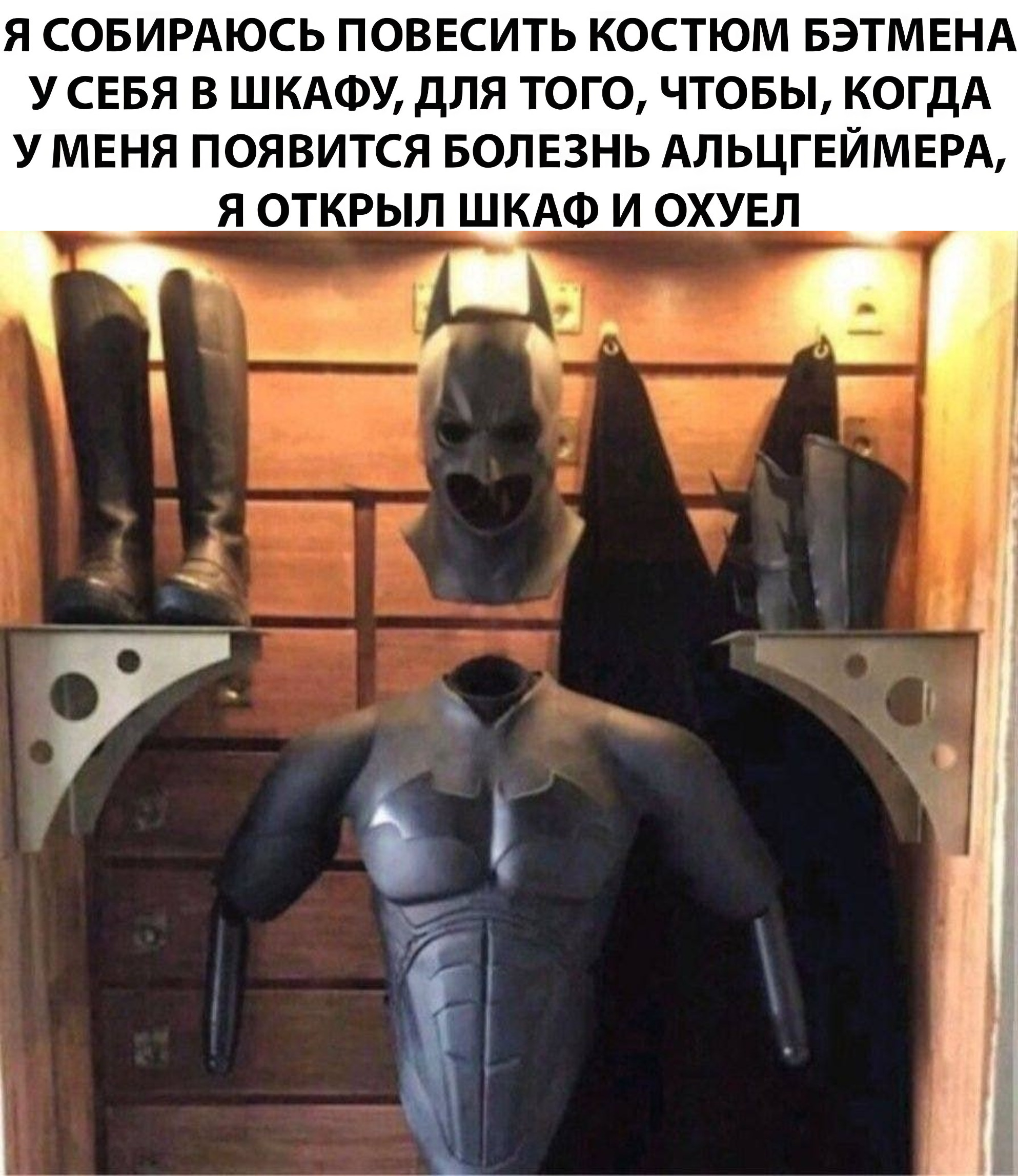3630 VerhovniyMemolog Юмор для всех и каждого Я Бэтмен 2 года назад Телеграм - Три мема внутривенно Юмор Картинка с текстом Бэтмен Костюм Старость Болезнь Альцгеймера Память Шкаф Мат Повтор 47 17 3 Ещё 0