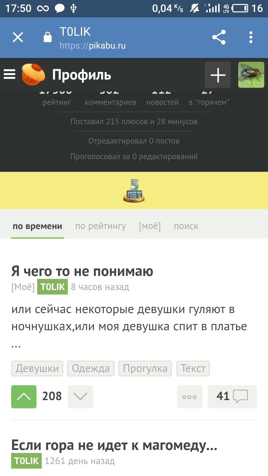 а я ему в ответку “по какой причине у пикабушника может убавится лишнее время на столько,что б разница в постах составляла 3 с лишним года,если не появление девушки ,” и тут такое понесловсь