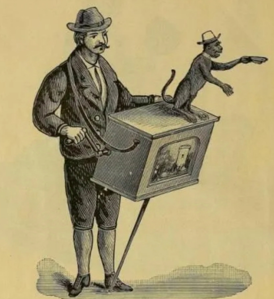Зайдем из далека. По образованию я артист театра кукол, работаю в государственном театре кукол в СПб. Параллельно занимаюсь традиционным театром Петрушки (не реклама, а ссылка на мой личный театральный проект). Так вот, историческая справка и очерки описывают эти представления с обязательным участием шарманщика. Я хотел этот пазл сложить до конца.