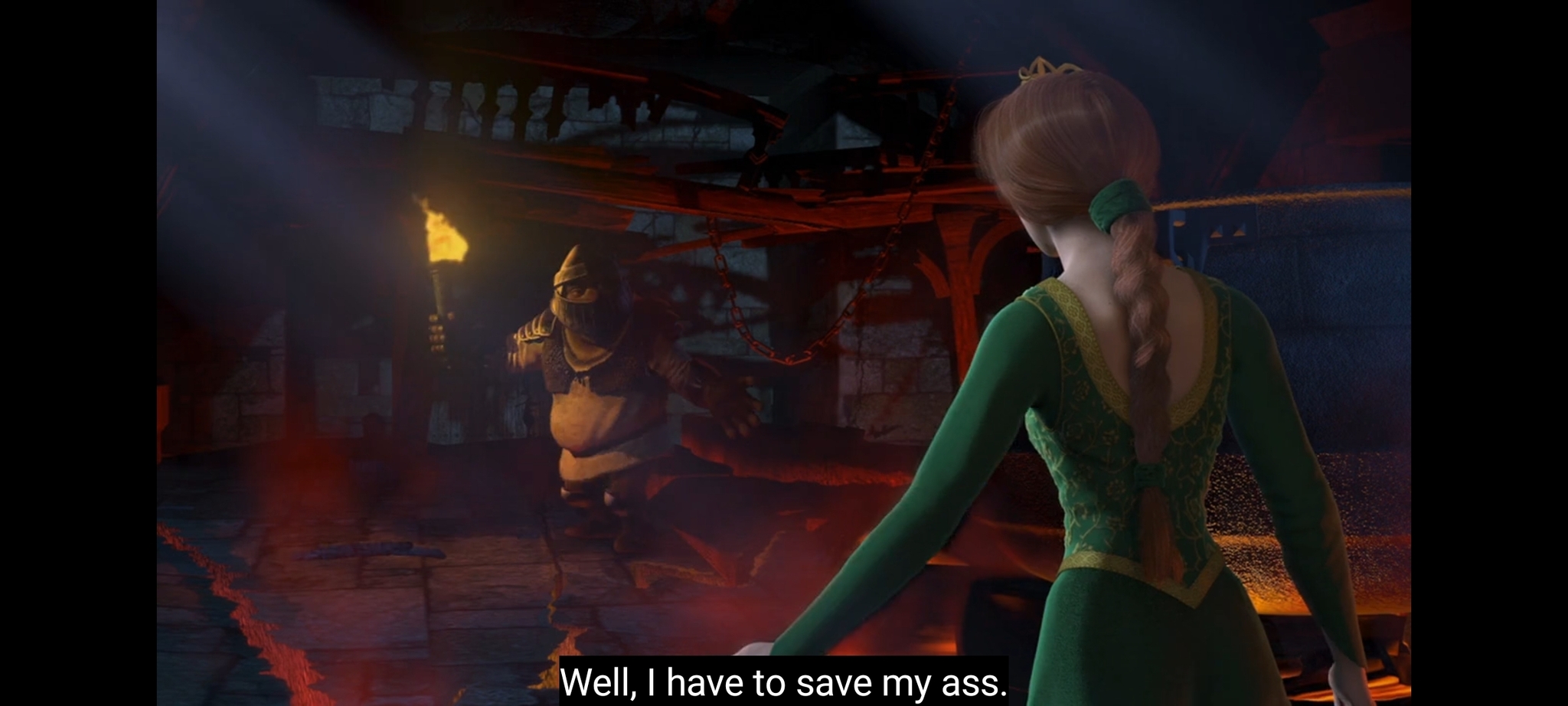 То есть, с точки зрения Фионы этот странный рыцарь заявляет, что должен (вместо того, чтобы героически сразиться с драконом) спасать свою задницу.