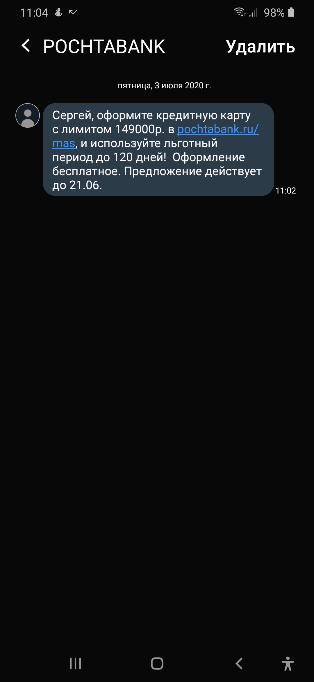 dotalov Я думал, Почта России и Почтабанк уже всем удивляли 5 лет назад Сегодня прилетела СМС. Пожалуй, воспользуюсь позавчера! [моё] Почта России Тормоз Длиннопост Скриншот Ещё 0