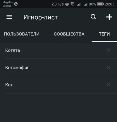 Ну как путь? )) Я года два продержался не занося ничего в игнор-лист, но на текущий момент как-то так он выглядит и ежемесячно пополняется Зато у меня мой теплый и ламповый пикабу, без лекарств, политики, вархаммера и фурри.