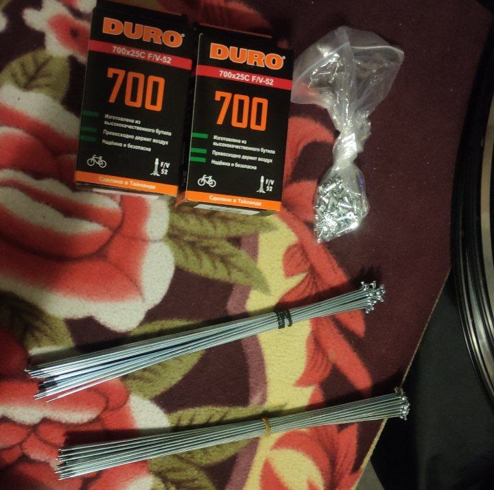 Оставалось только купить спицы с ниппелями, сделали мы это на следующий день, заодно купили камеры для шин