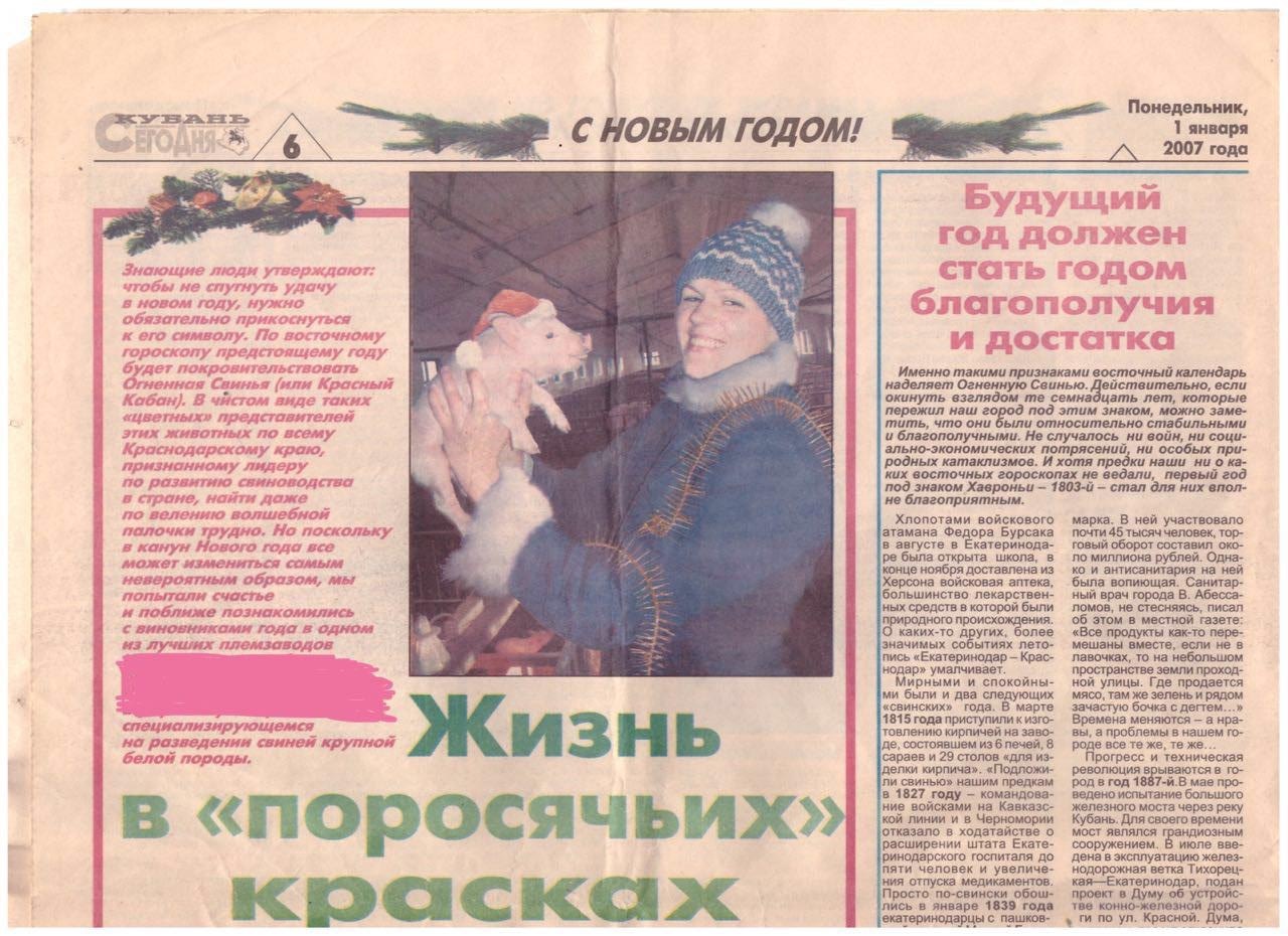 Вот половина страницы с фото. Во второй половине сама статья с обычной пургой на тему: свиньи, Новый год и развесистая клюква в нашем суперразвитом сельском хозяйстве.