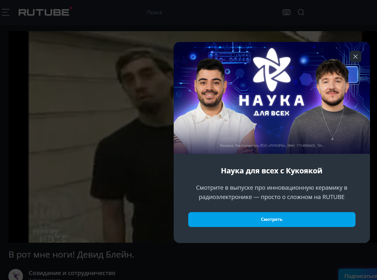 6 puppiduppi 21 день назад Я идиот. Я заплатил рутюбу за то, чтобы не было рекламы Но получаю я вот это, вместо того, чтобы смотреть В РОТ МНЕ НОГИ! Теперь я должен что? Ещё 399 рублей за месяц заплатить?!! Нафига мне реклама канала?!!! В РОТ МНЕ НОГИ РУТЮБ!!!! [моё] RUTUBE Подписки Ещё 0