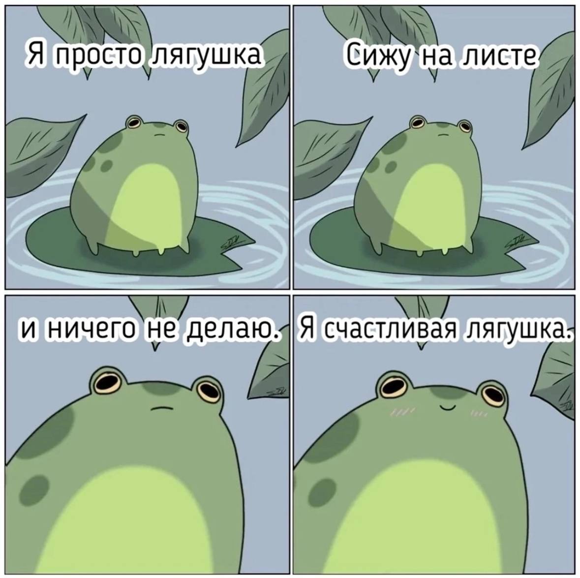 116 Kdierug72 Специфический юмор Юмор Я хочу быть счасливой лягушкой 4 дня назад Юмор Картинка с текстом Счастье Лягушки 11 6 2 1 1 Ещё 0