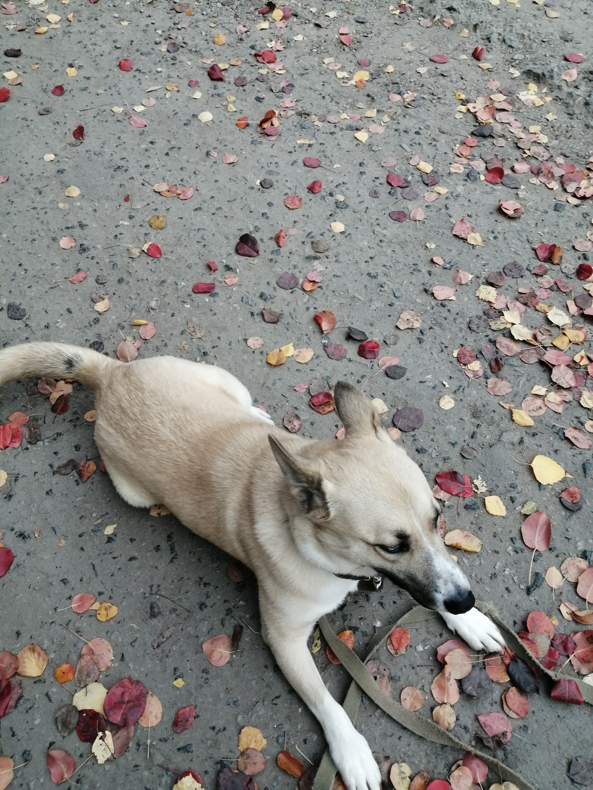 6 FreddoV Я: Хочу милую осеннюю фотку. Фотка: 2 года назад [моё] Осень Собака Листва Мобильная фотография Ещё 0