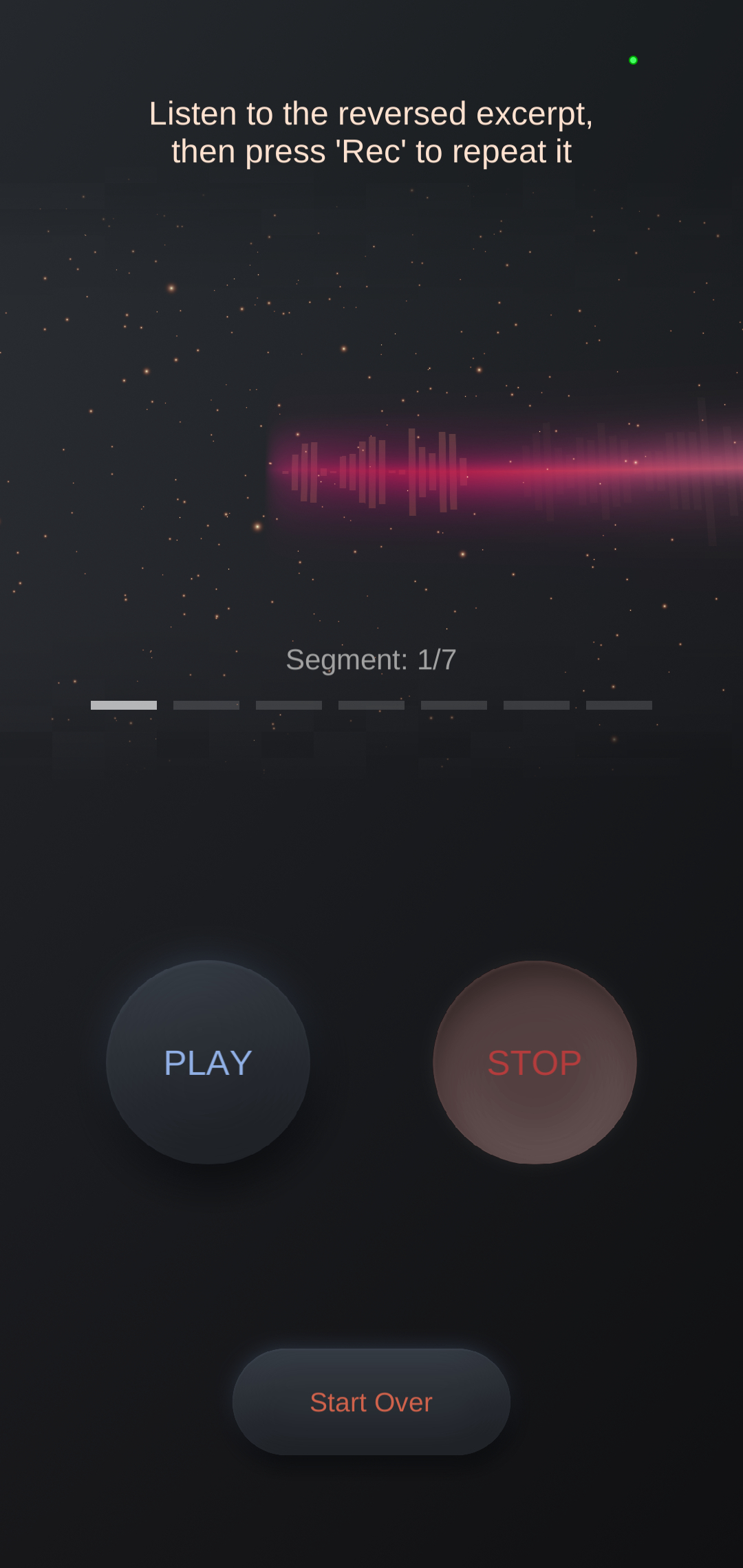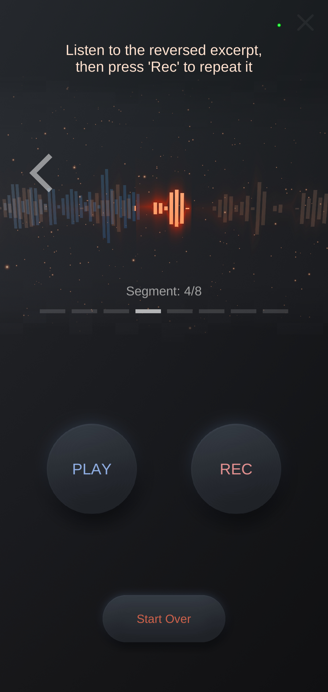 В общем нужно как минимум 2 игрока. Первый нажимает "Rec" и поёт песню, пока второй не слышит. После завершения, песня разворачивается задом наперед и разбивается на сегменты(все происходит автоматически), далее телефон передается второму игроку, которому нужно по очереди прослушать каждый сегмент и повторить его под запись. После того как все сегменты записаны, игрок жмет "Готово" и все его записанные сегменты объединяются и разворачиваются обратно. Собственно получившийся шедевр ему и предстоит угадать.