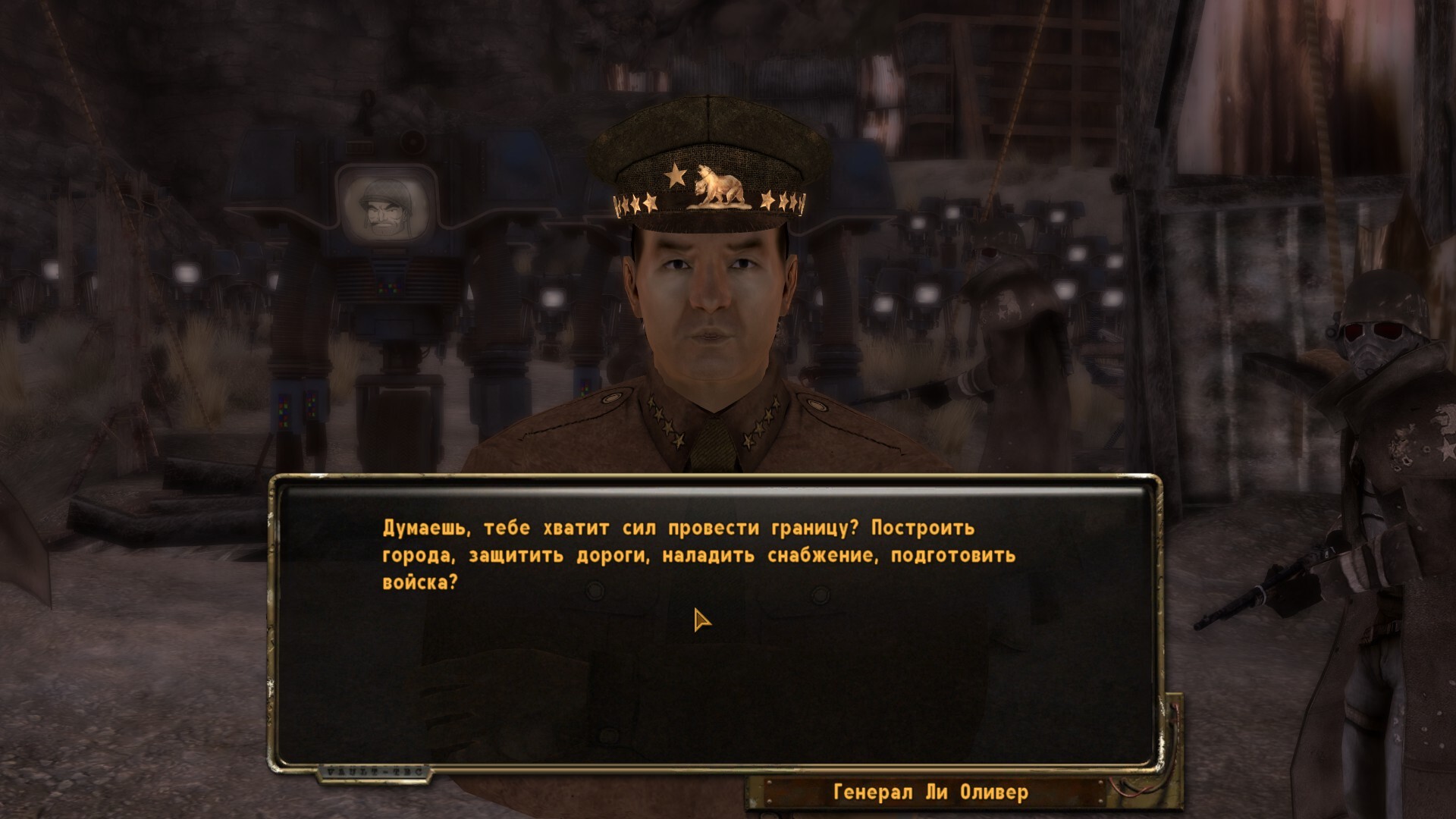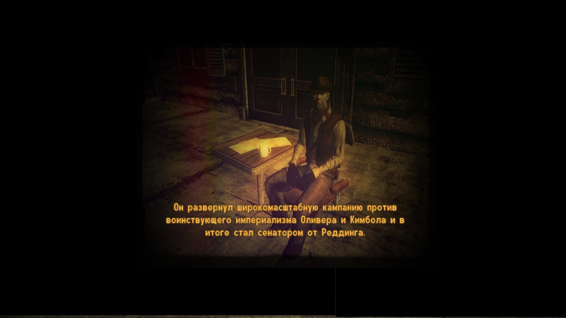 Примм: посадил там шерифом линчевателя из тюрьмы, так как отдавать городок силам НКР не хотел.