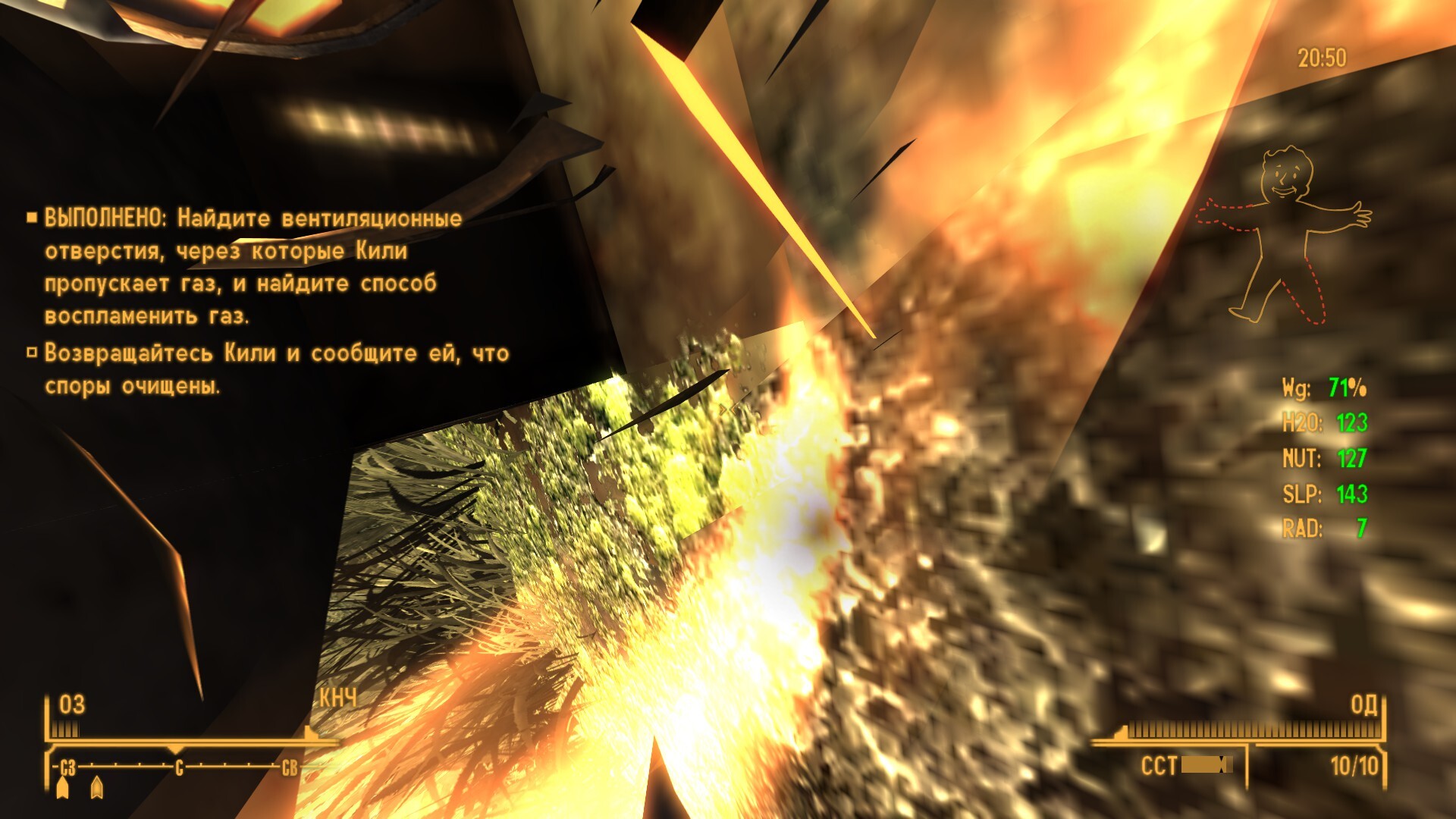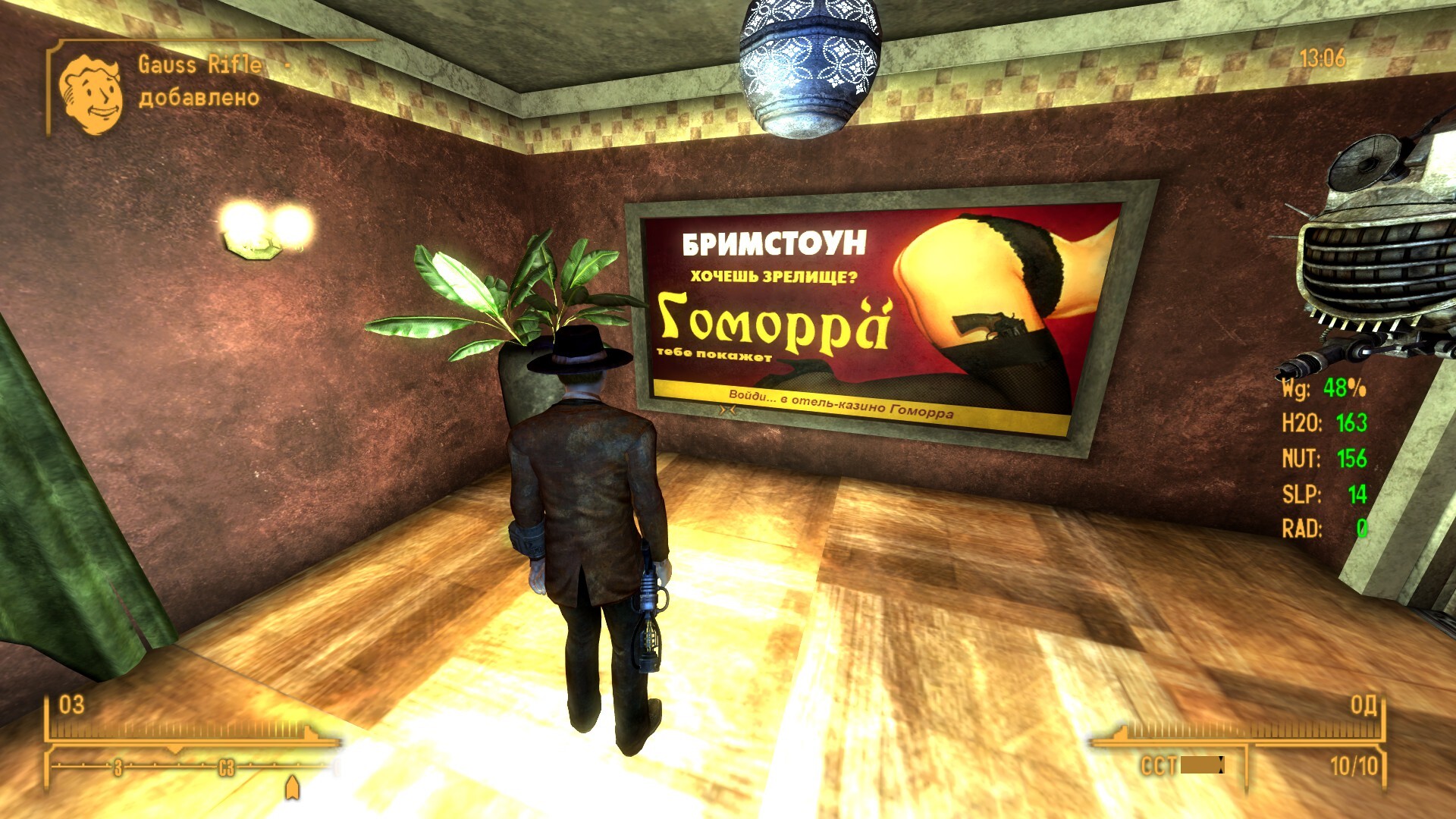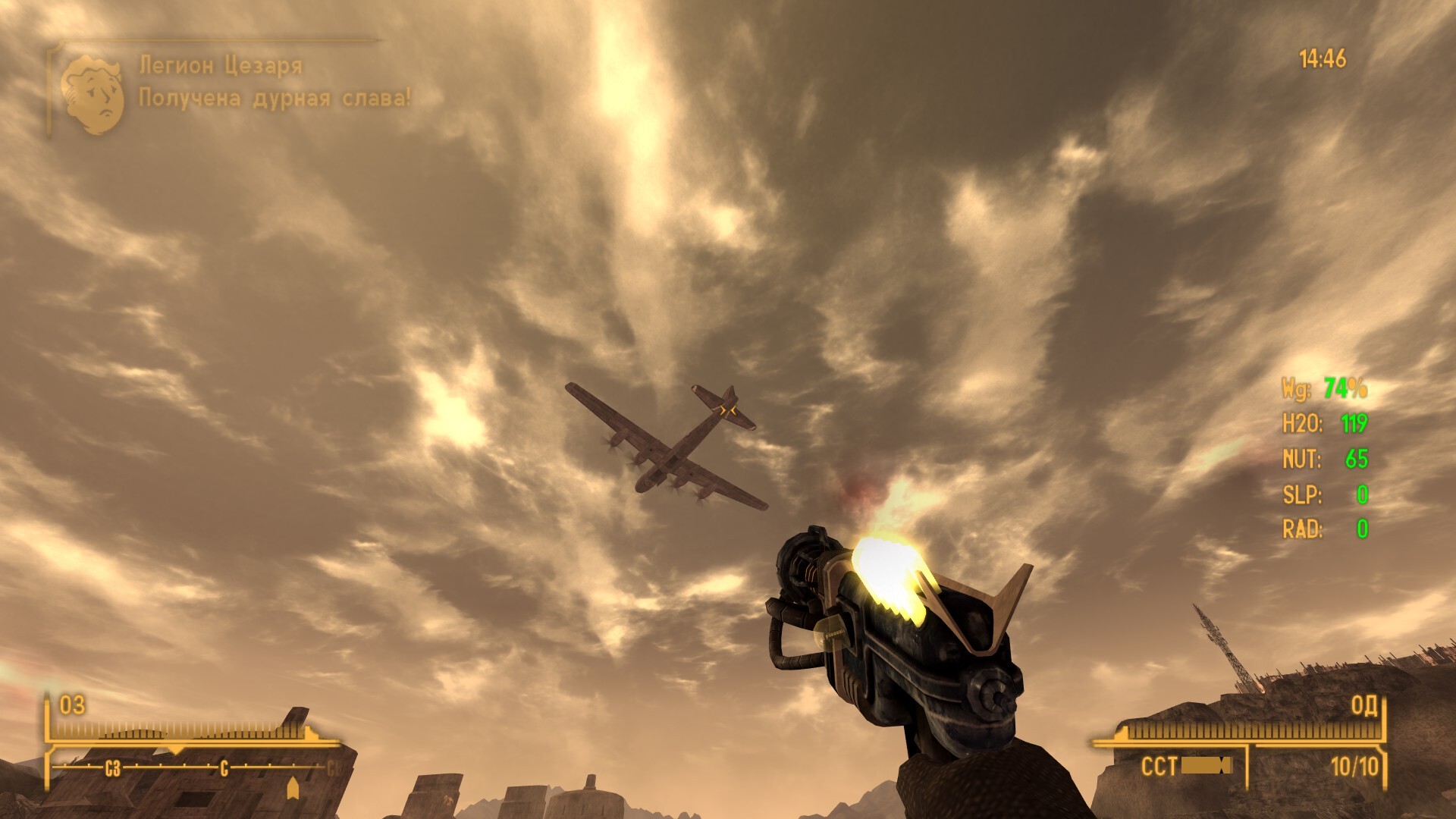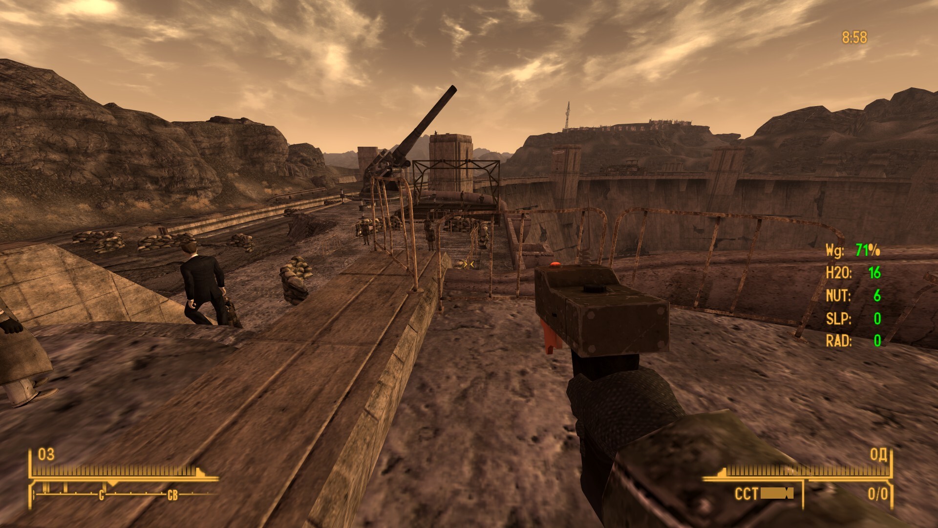 Внешний Вегас: помог всем мирным. Уничтожил двух тайных работоговцев из Вестсайда и одного наркодилера из Аэропарка, скрыл воровство воды местным совхозом у НКР, помог Люси с яйцами монстров (перспективно же, потом можно и туризм к ней наладить как в Колизей).