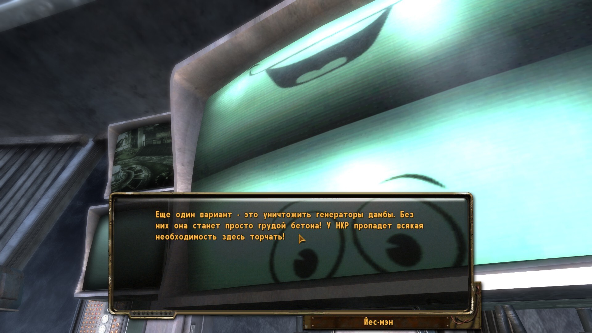 Дамба Гувера: цела и поддерживается. Вариант сломать её годится лишь для легионера (Легион всё равно её сломает сам из-за невежества или через саботаж рабов) или поехавшего рейдера-анархиста.