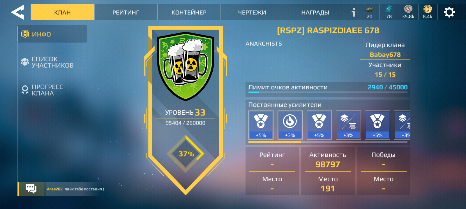 За активность раз в неделю/месяц каждому из членов клана дают радиоактивные жетоны, которые в свою очередь открывают клановые сундуки