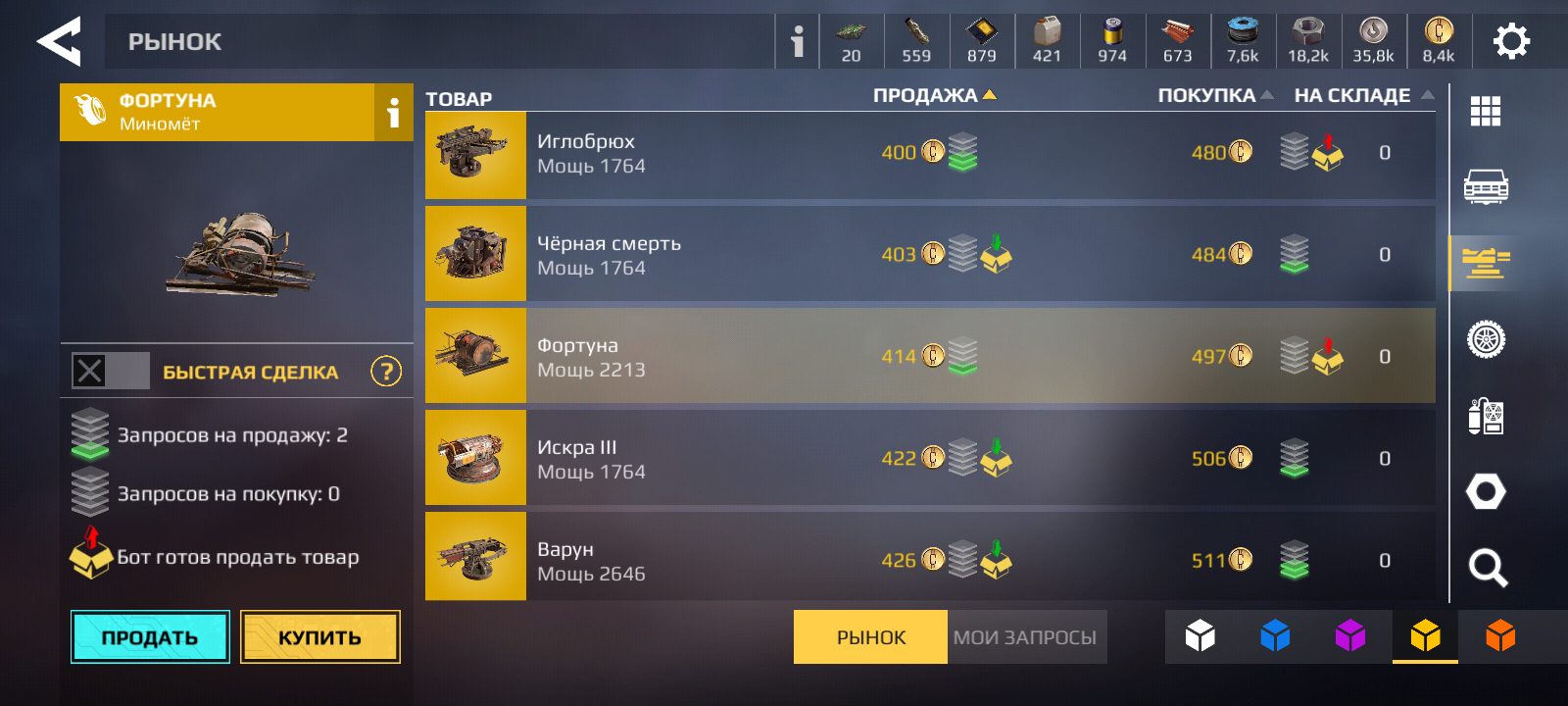 Быстрая сделка-быстоая покупка/продажа ниже/выше актуальной цены соответственно