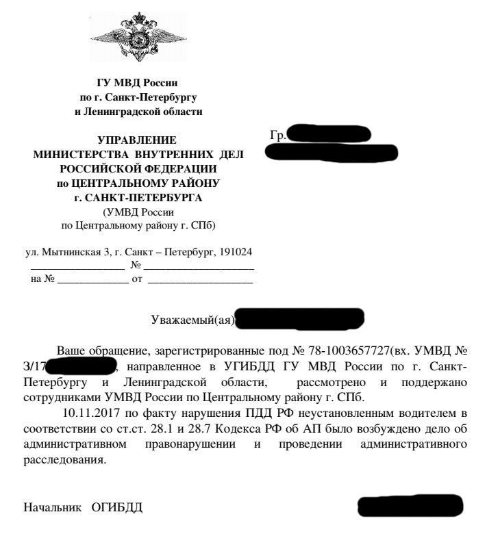 И сегодня случилось продолжение данной истории - мне пришло письмо из МВД с сообщением о возбуждении дела и проведении административного расследования:
