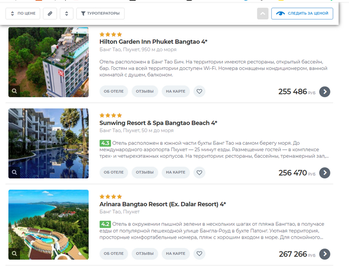 ✍️ Сначала выбрать район для жилья: с детьми — Ката, Карон или Банг-Тао (пологий вход и чистые пляжи), для экономии — Раваи и Чалонг (но далеко от моря), для тусовок — Патонг (но шумно и грязно). Потом выбрать жилье в телеграм-каналах.