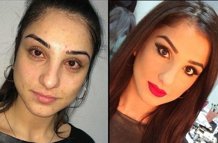 Гхм ну да, беда в том, что косметикой можно ретушировать очень многое вплоть до того что визуально овал лица меняется, форма глаз, цвет кожи, от огромного лба или носа отвлекается внимание и т.д., ну и с баблом - операции.