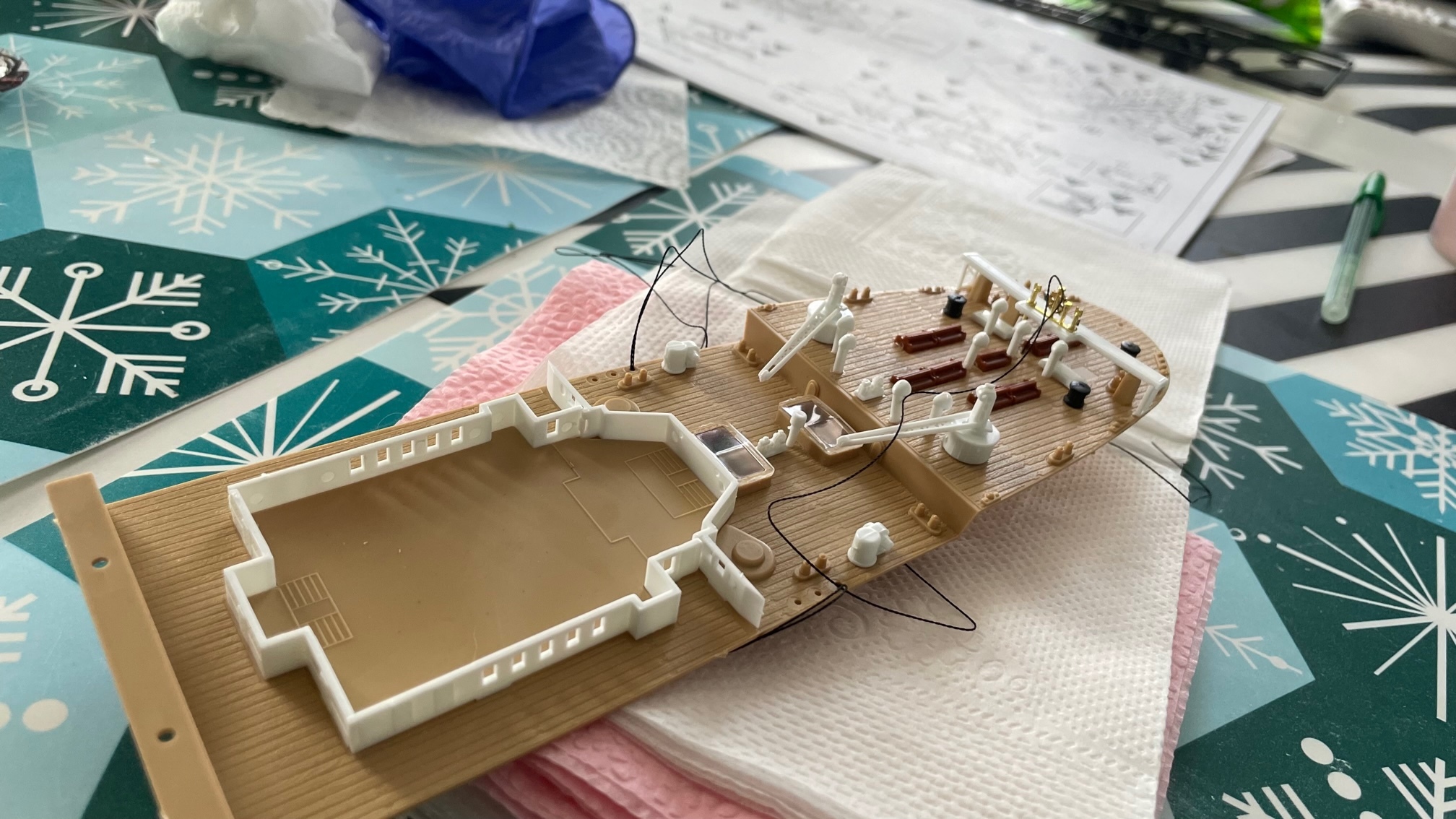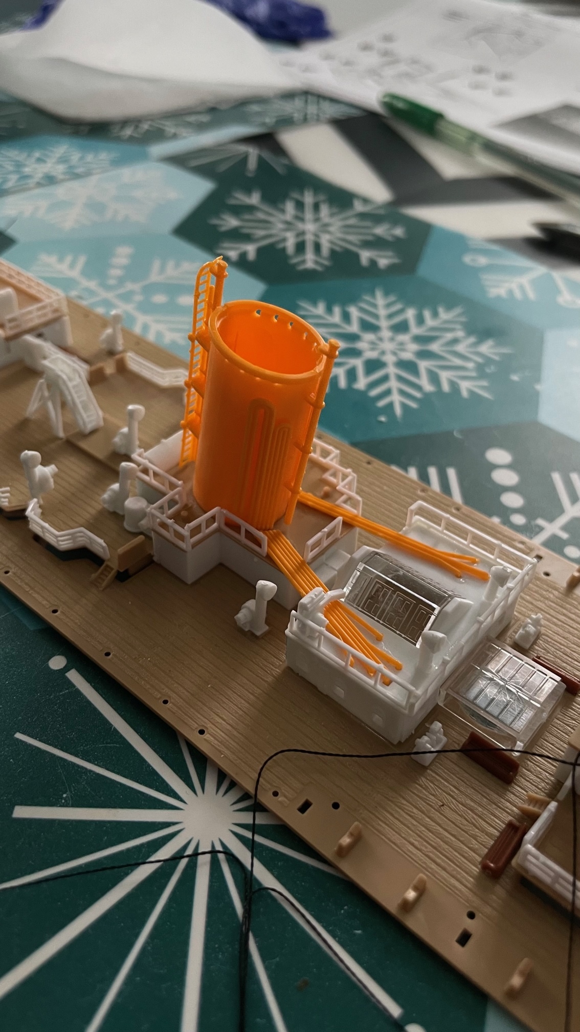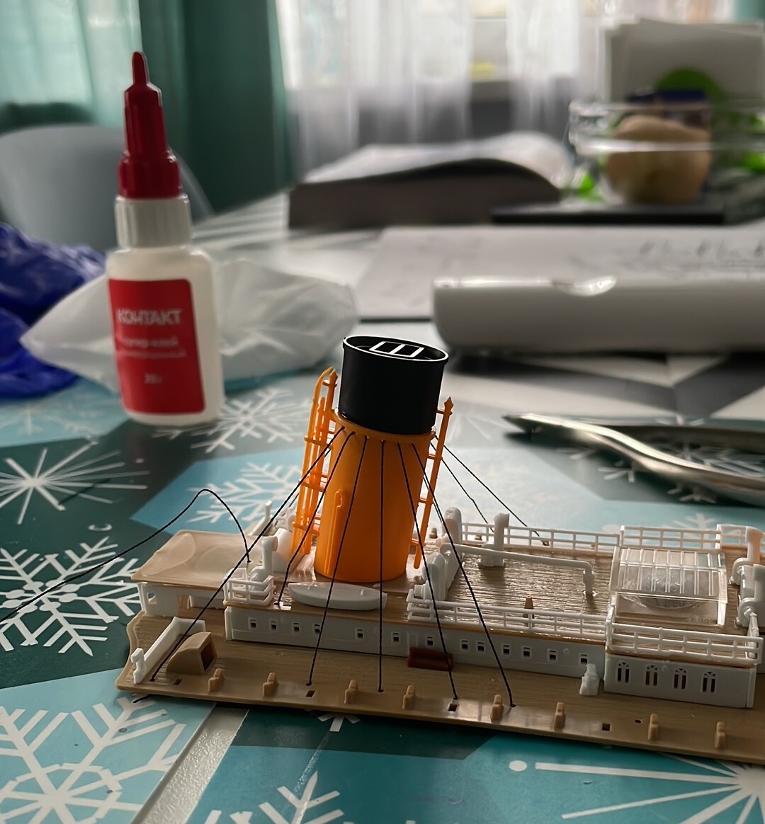 Сборку другой палубы я не сфоткала, так что теперь приступим к сборке верхней палубы. Начнем с труб. (В идеале их надо было покрасить, но краски у меня нет, поэтому поставила так, как есть).