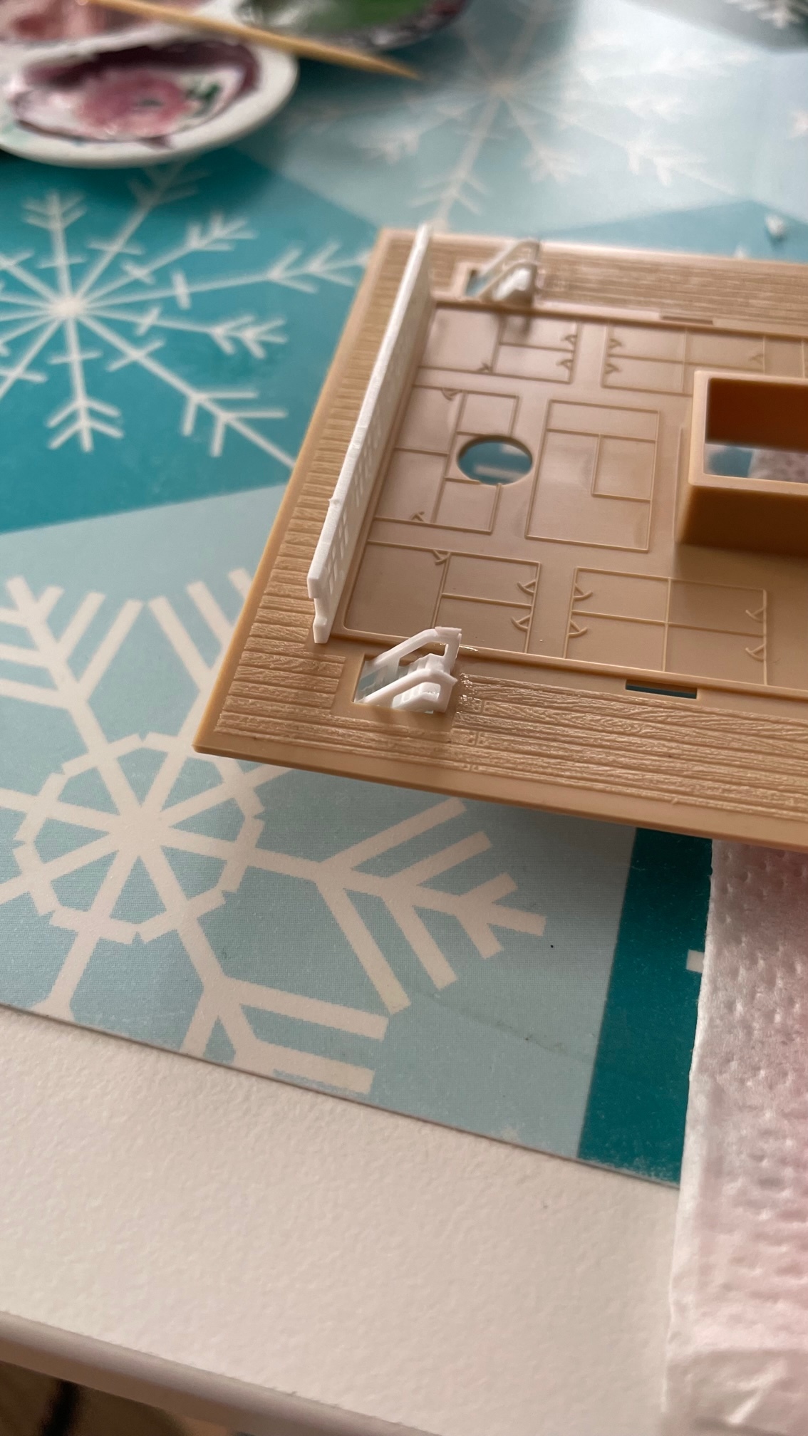 Мне было сложно клеить эти маленькие заборчики.