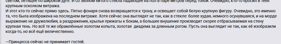 Старлайт покачала головой, и забрала из моих рук явно испорченную штуку. Это было грустно. Не только то, что я, возможно, разочаровал Старлайт (и испортил вещи Твайлайт!), но и то, что она решила забрать её с помощью магии. Я ничего не почувствовал, и подумал, что было бы приятно ощутить прикосновение её копыта, если бы она решила сделать это вручную... Вкопытную?