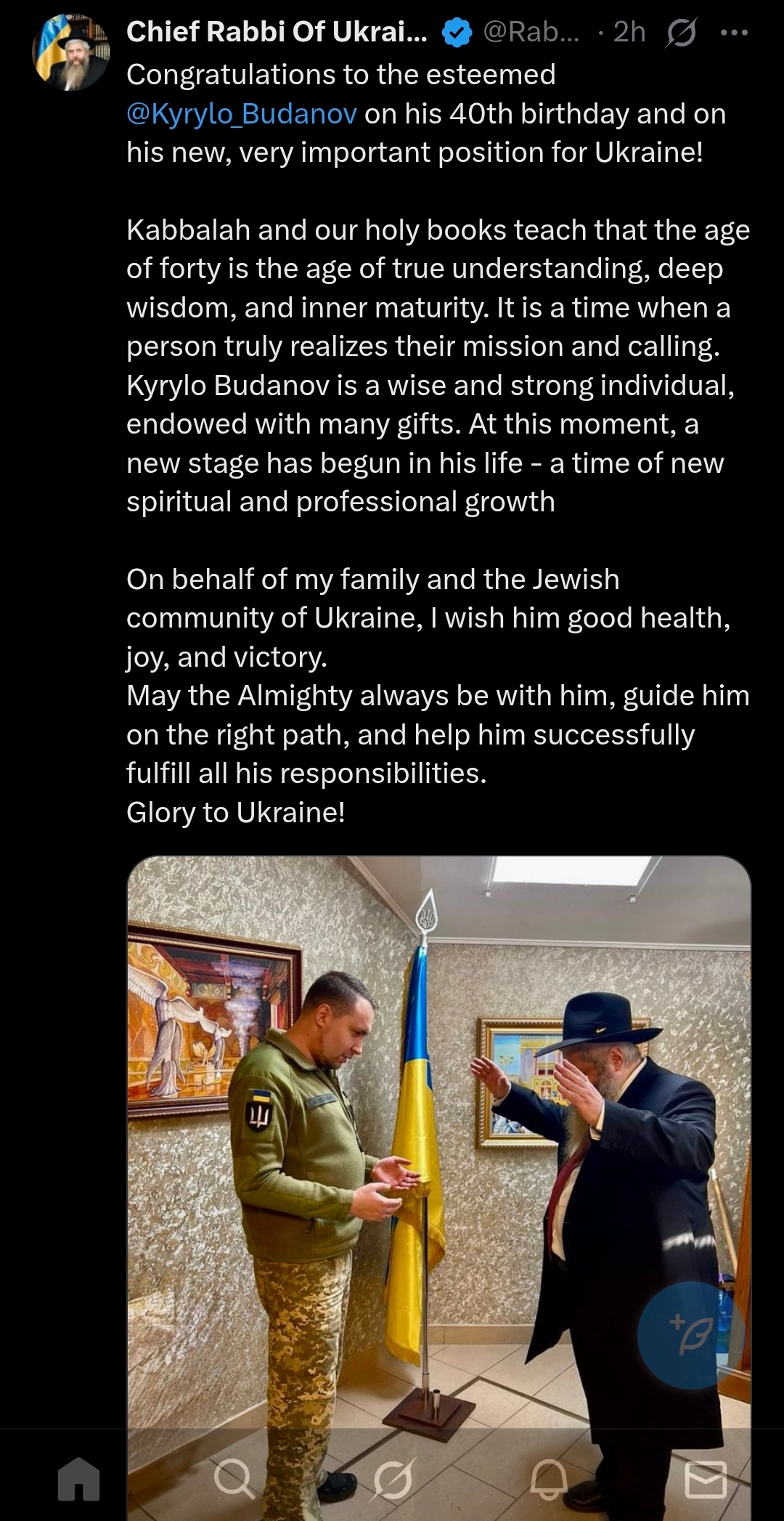 Поздравляю уважаемого Кирилла Буданова с его 40-летием и новой, очень важной для Украины должностью!