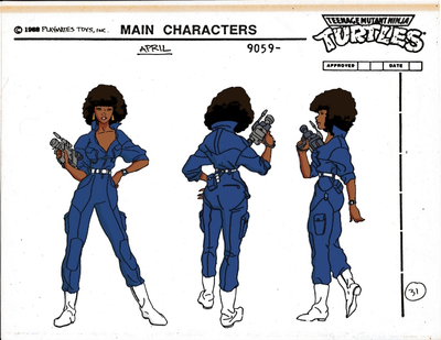 честно мне вообще все равно как выглядит или выглядела Эйприл, мне нравился Шредер ))) Просто увидела картинку всплыли клипы из 80х, там что женщины что мужчины все кудрявые, так что можно предположить что автор рисовал эйприл мужчиной, так как апрель вроде как намекает на мужской род