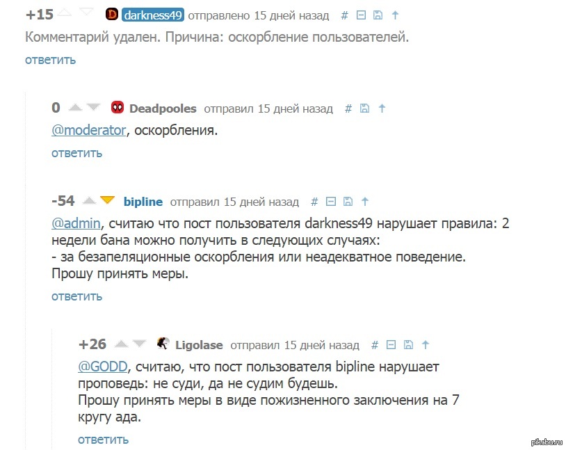darkness49 Я просто сказал автору что он М*Д*к 10 лет назад А Меня забанили на 15 дней http://pikabu.ru/story/_3191506 Бан Логика Пикабу