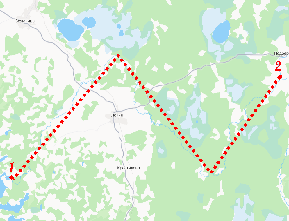 Вы спросите, почему именно такая форма ломаной? Взгляните на карту реки. Под цифрой 1 - исток, под цифрой 2 - устье. Реку, надеюсь, разглядеть сможете. С красной пунктирной линии, коя является упрощённым контуром реки, и срисована ломаная на флаге. О как!