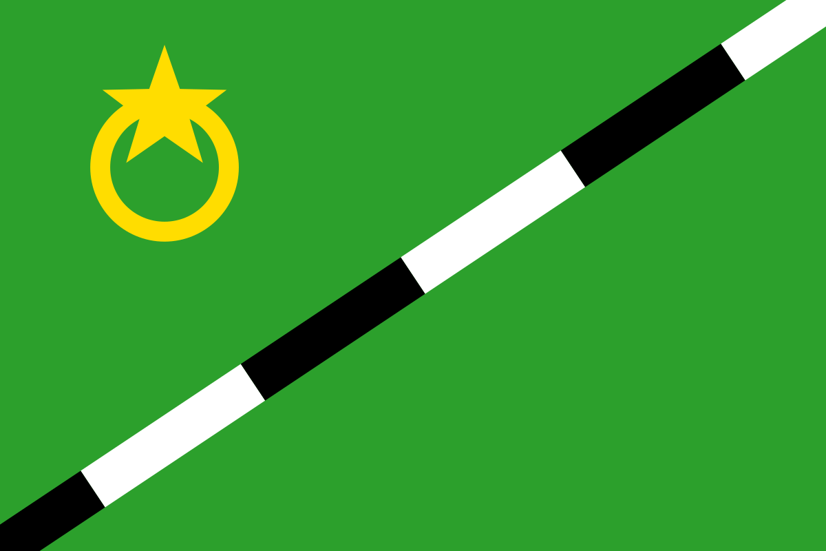 Символика флага: Жёлтый цвет символизирует засеянные рожью и пшеницей поля, зелёный - просторные леса и превеликие поляны. Синий контур в форме буквы "N" (или Z, если по нашим реалиям вам дык будет угодно) - это прямое олицетворение реки Локни.
