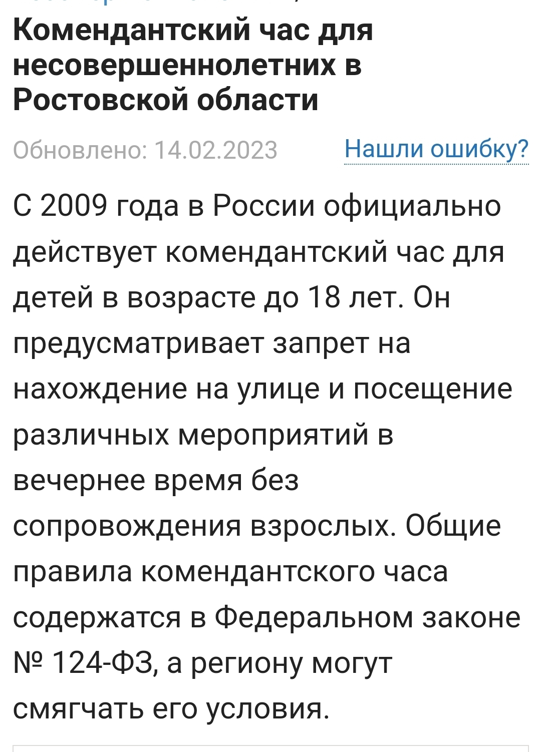 А про закон я слышал, но он не работал, когда я был детем в возрасте до 18 лет. Возможно, сейчас на фоне общей истерии родителей, который ставят gps маячки на телефоны своих детей, в УМВД решили такие: "Да похер на все наши висяки, погнали кошмарить малолеток во дворах". Не отрицаю такого варианта