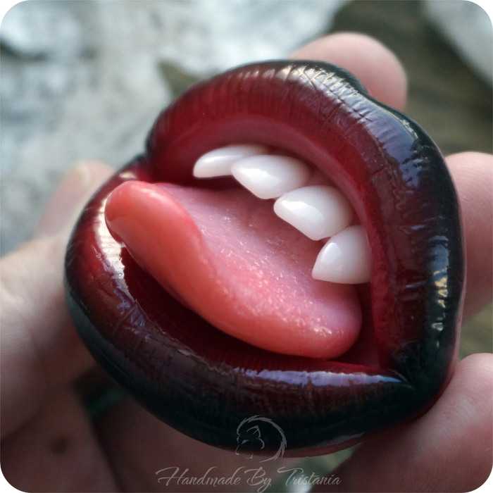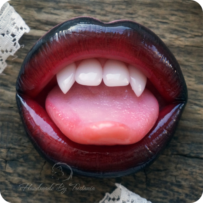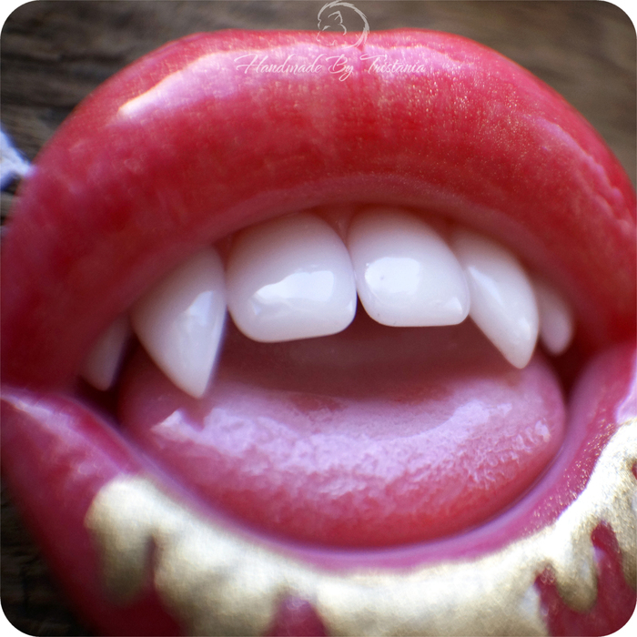 Задумкой была такая : рот Вампи, которая любит не кровь, а золотишко)) Получилась очень довольная брошь.