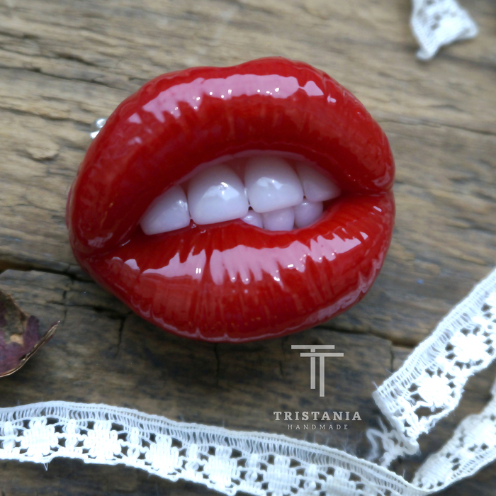 Эксперименты с губастыми брошками постоянно заставляют меня лавировать между эпатажностью и здравым смыслом :) И чем дальше, тем больше понимаю, что уже не остановиться. Да не сильно то и хочется))