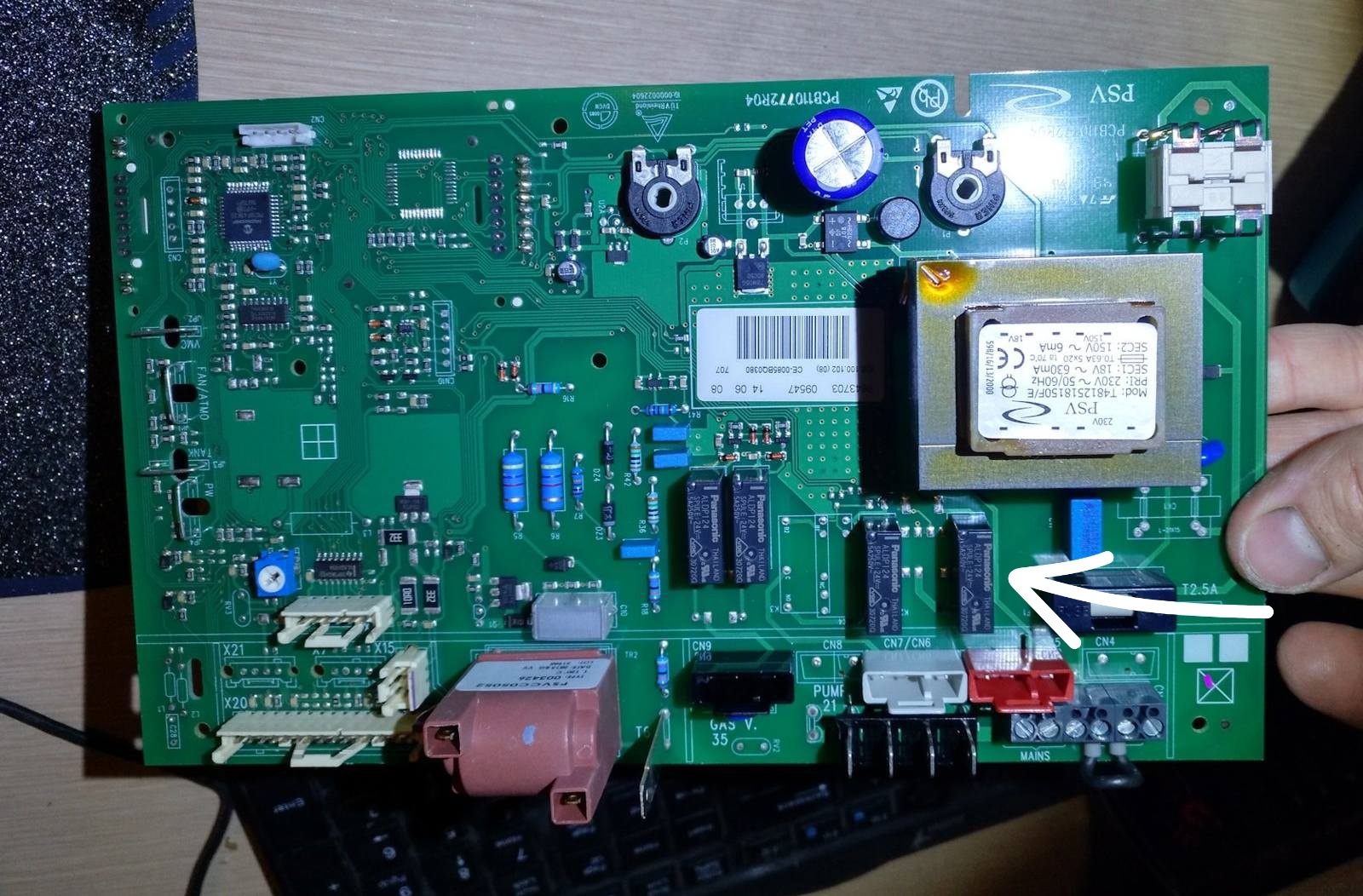 И вот в этом году проблема повторилась в точности. Та же ошибка (F05), те же симптомы. Стоит сказать спасибо прошлогоднему ремонтнику. Он не скрывал своих действий, наоборот, всё показал, отвечал нам мои вопросы. Конечно, прямо на реле он не указал, но как определить работоспособность агрегатов показал. В итоге я без особых проблем в этом году проверил вентилятор и прессостат и вышел на "виновника торжества" - плату.