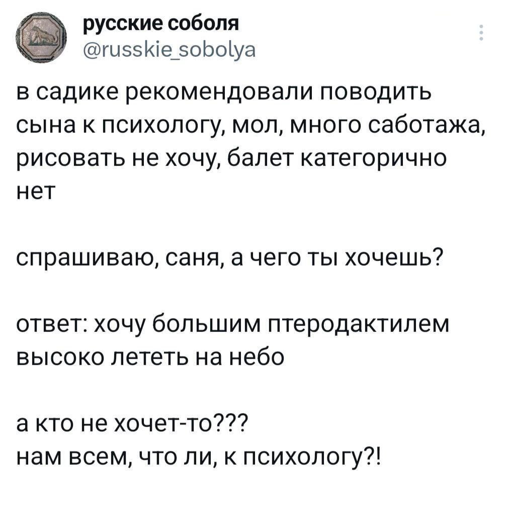4886 tiSamdurak Юмор Я тоже хочу!1 9 месяцев назад Юмор Скриншот Родители и дети X (Twitter) Дети Мечта Птеродактиль Психолог 131 28 10 6 3 Ещё 0