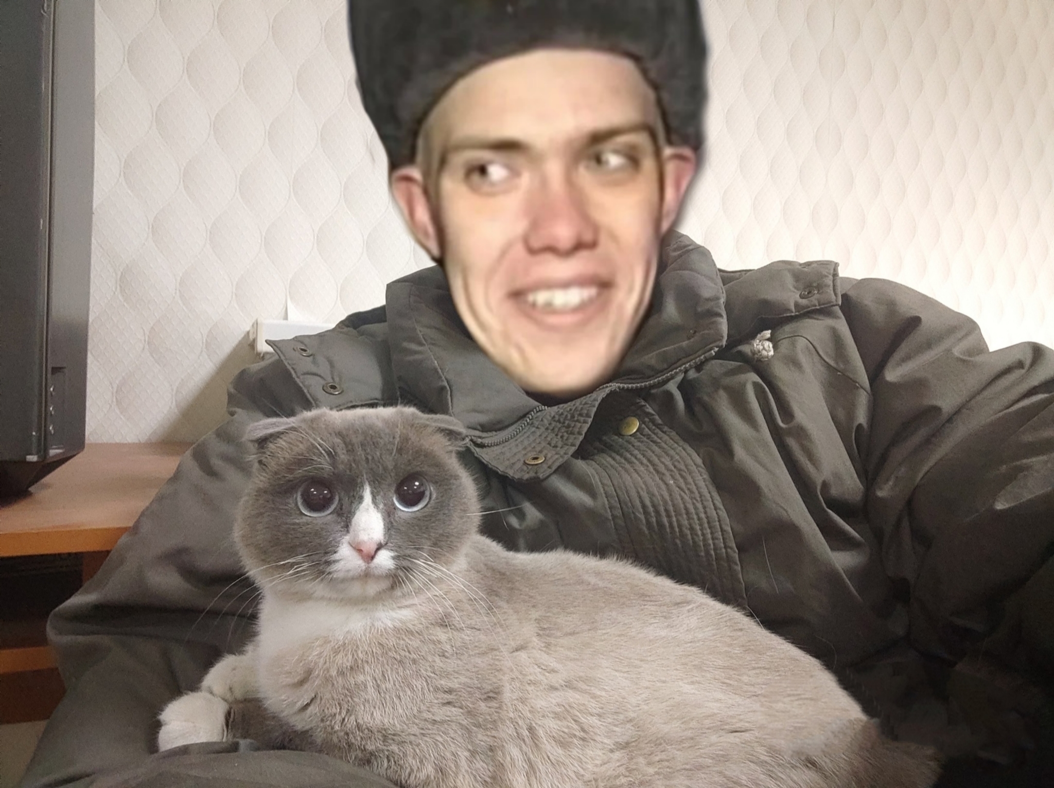 Я капитан группы "Томск Антитеррор" девяностых годов в отставке. Я пиздец ебанутый. Но кошка ваще пиздец.